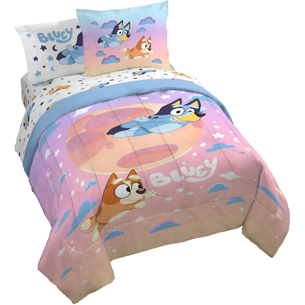 Jay Franco Bluey & Bingo Full Comforter Set - 7 Piece Bed Set Includes Sheet Set & Pillow Covers - Super Soft Clouds & Stars Kids Bedding
