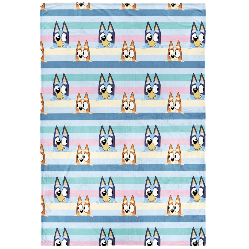 Bluey and Bingo Plush Throw Blanket - Measures 46 x 60 Inches - Kids Super Soft Striped Fleece Bedding