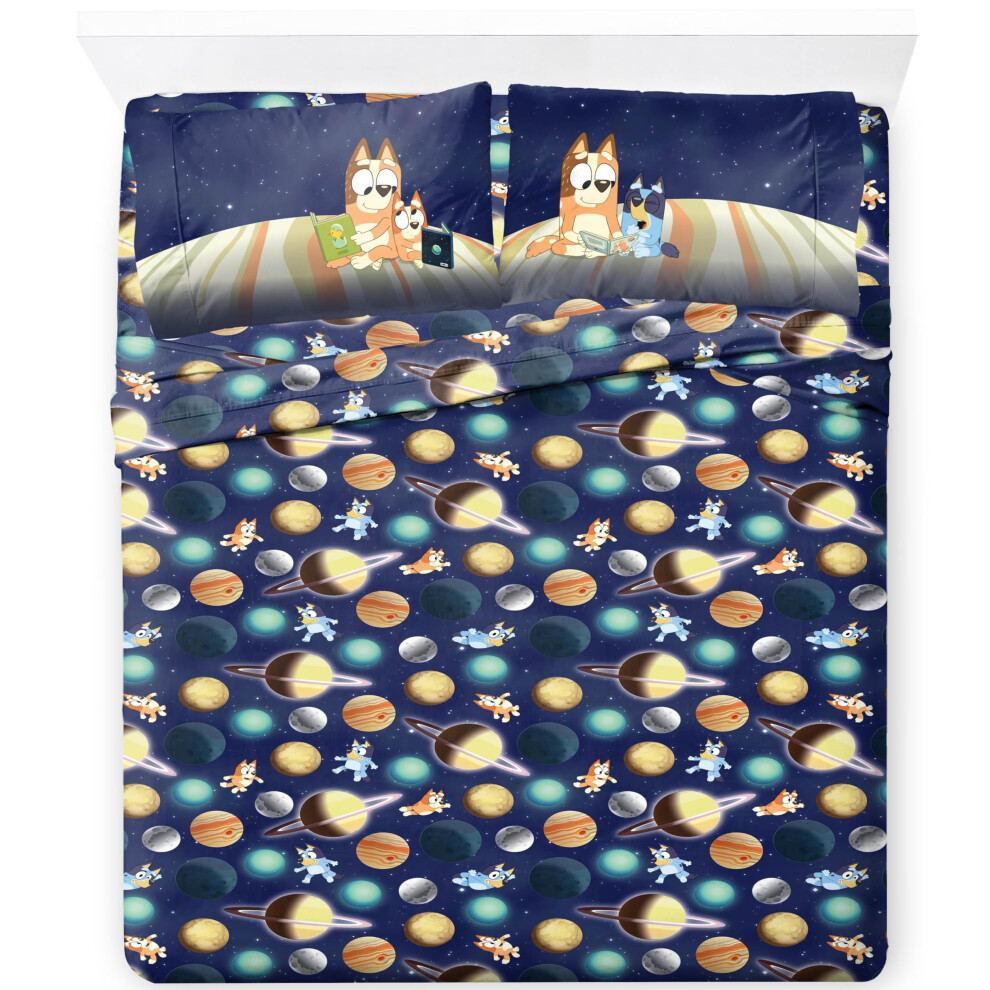 Jay Franco Bluey & Bingo Toddler Comforter Set - 4 Piece Bed Set Includes Sheet Set & Pillow Covers - Super Soft Clouds & Stars Kids Bedding