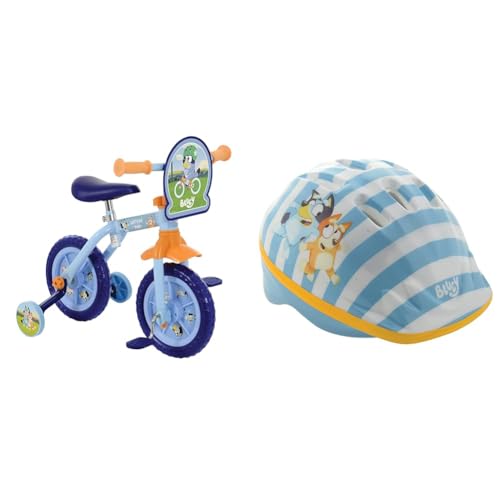 Bluey 2-in-1 Training Bike - 10 Inch, Officially Licensed, Vibrant Decals, Sturdy Frame, Adjustable & Kids Bike Helmet Officially Licensed Character Design Robust EPS Inner Material