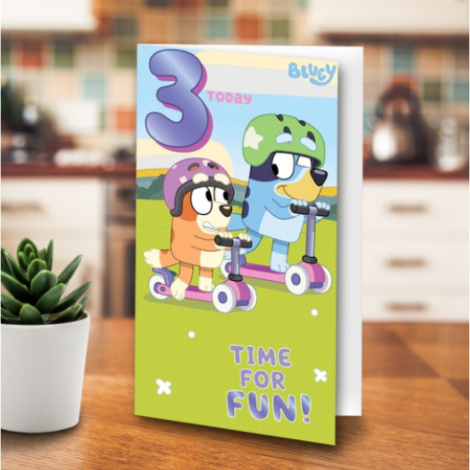 3rd Birthday Card Bluey Age 3 "Who Looks 3..." with Envelope, FSC Accredited