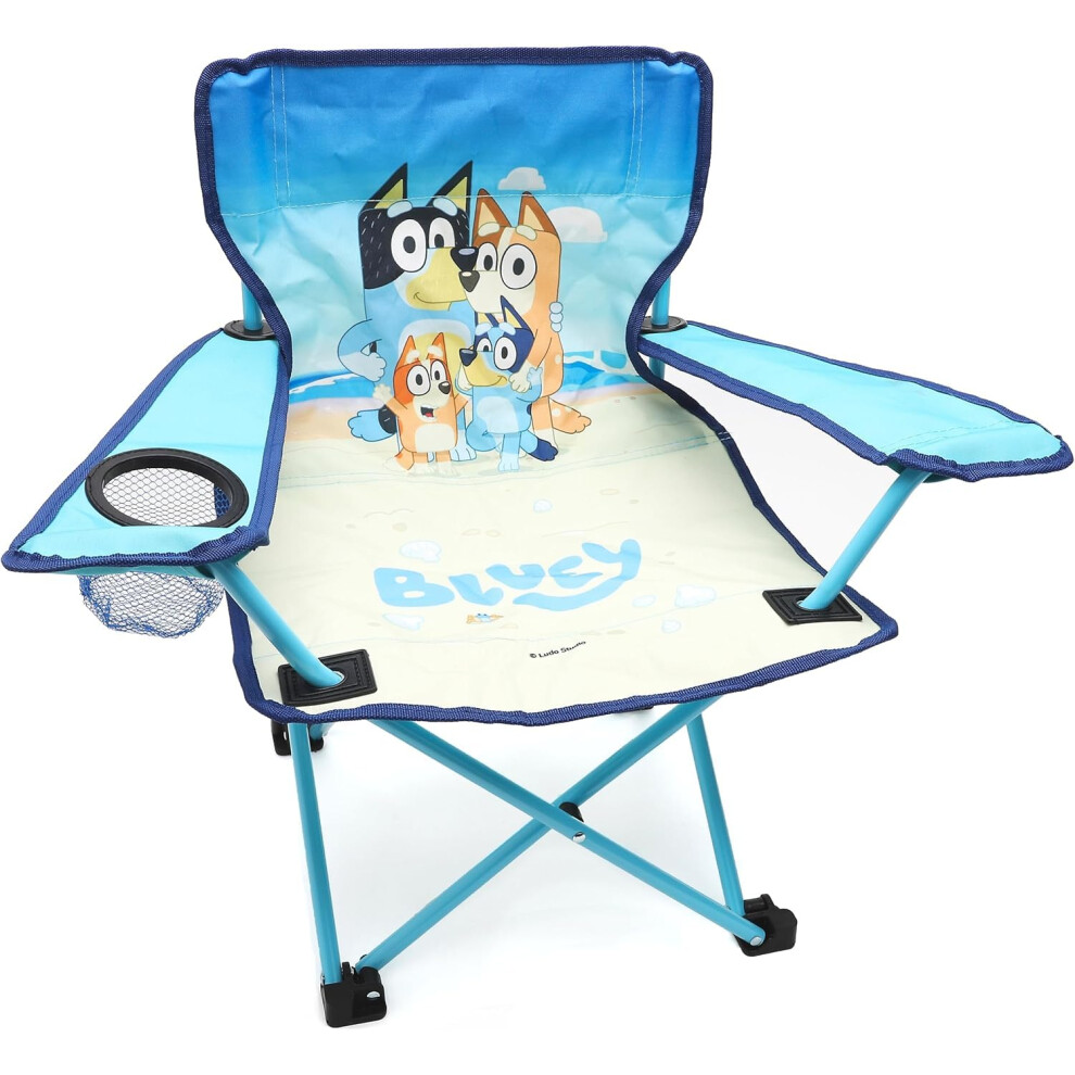 Toyland® Bluey & Bingo Folding Children's Camping Chair With Cup Holder & Storage Bag - Perfect for Camping Trips, Beach & Garden