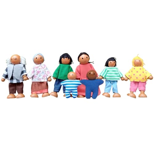 People Figures Dolls Playset - Wood, Dolls House Doll Family, 8 Characters Articulated Doll | Interactive Role Play Figure, People Figures For Kids Learning, Imagination, Home Play
