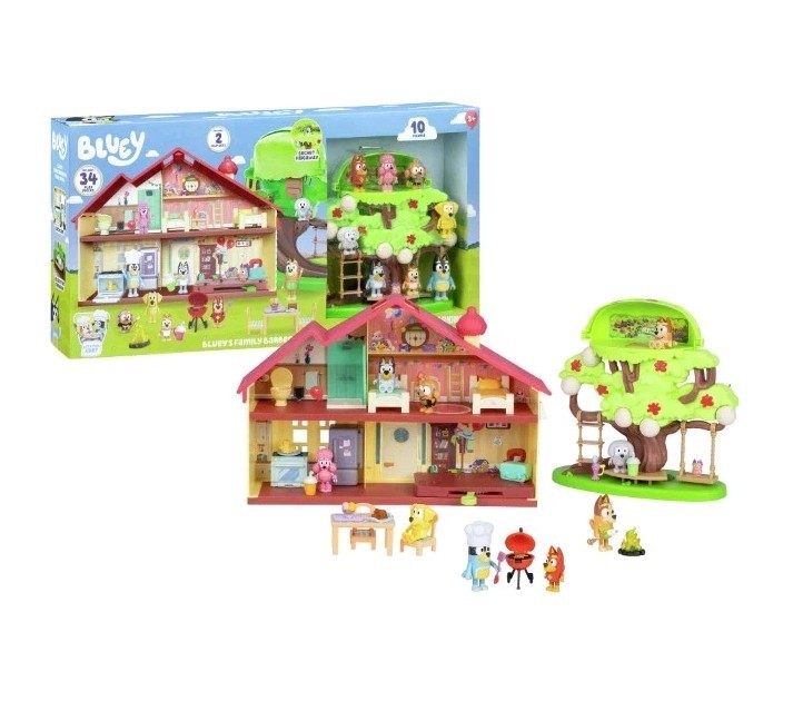 New Bluey Family Mega Celebration Home & Tree House Barbeque Playset Bundle
