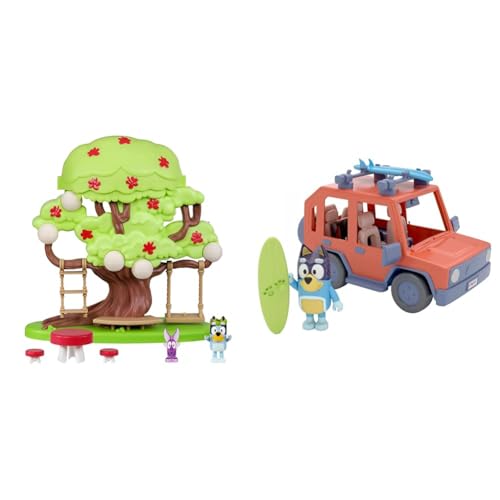 Bluey Tree House Playset with Secret Fairy Hideaway, Flower Crown And Secret Fairy Figure & , 4WD Family Vehicle, with 1 Figure and 2 Surfboards Customizable Car - Adventure Time for Ages 3+