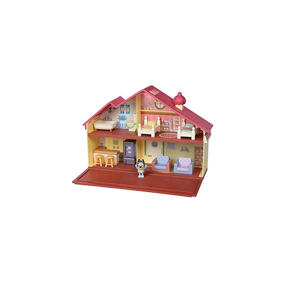 Bluey Heeler Family Home Play Set: 1 Official Collectable Action Figure, Large Playhouse Playset 4 Rooms, Furniture Accessories and Pull Down Patio