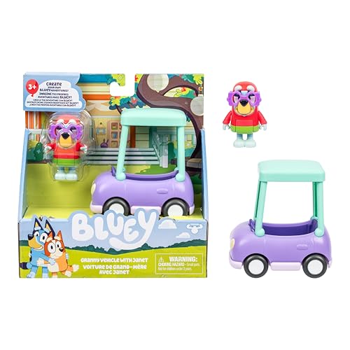 Bluey Hit The Road And Her Friends In This Cute Little Vehicle! Ride Along In Grannies Car with Janet, This Vehicle Fits One 6-7.6 CM Articulated Janet Figure Inside