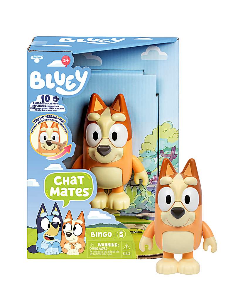 Bluey Chat Mates Bingo. Press Bingo's Nose And Hear 10 Of Her phrases From The Show, This Figure Stands At 14 CMTall. With Articulated Arms And Legs