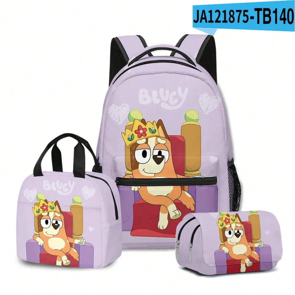 (2) 3pcs Bluey Backpack Set Pencil Case Children Lunch Box Bento Bags Mochilas Handbag Reduce School Bag Large-Capacity Cartoon Gift