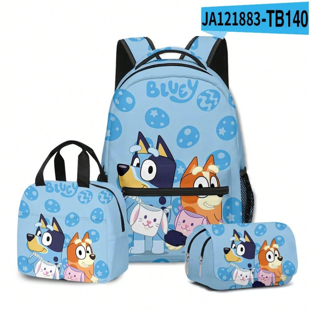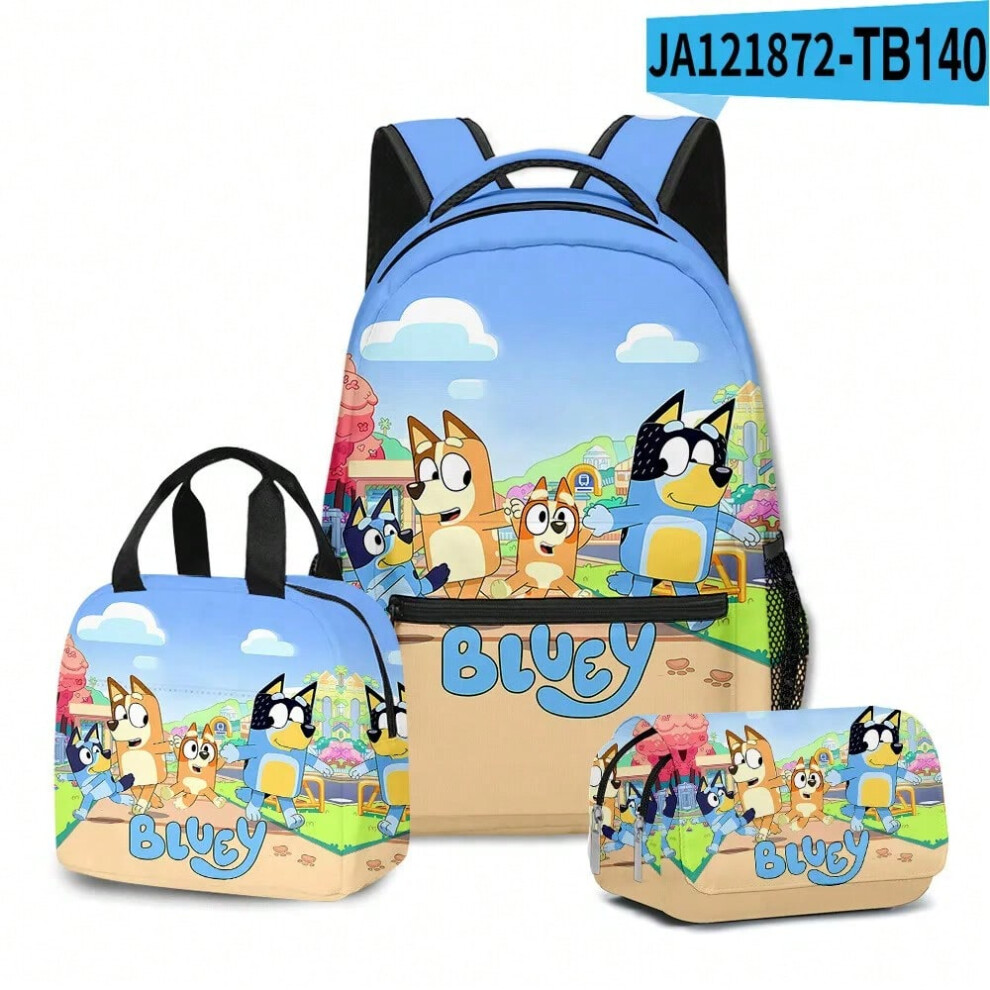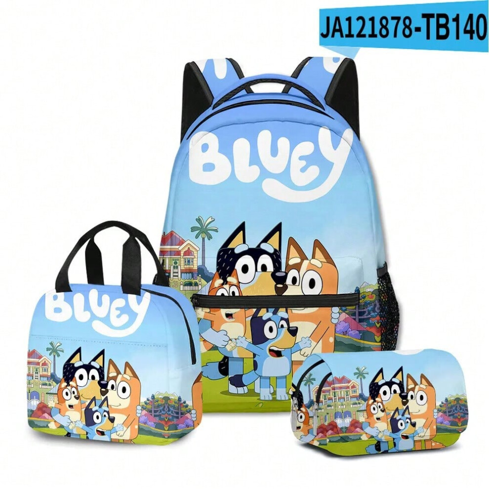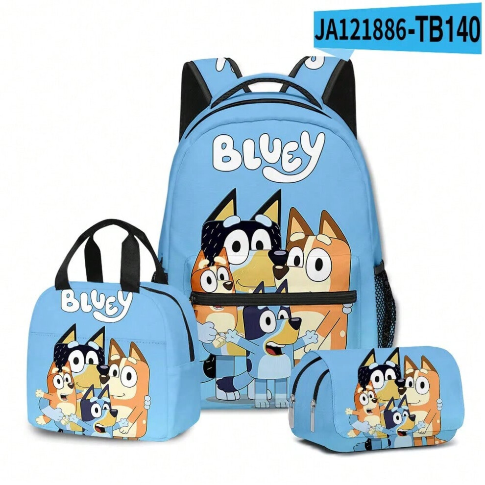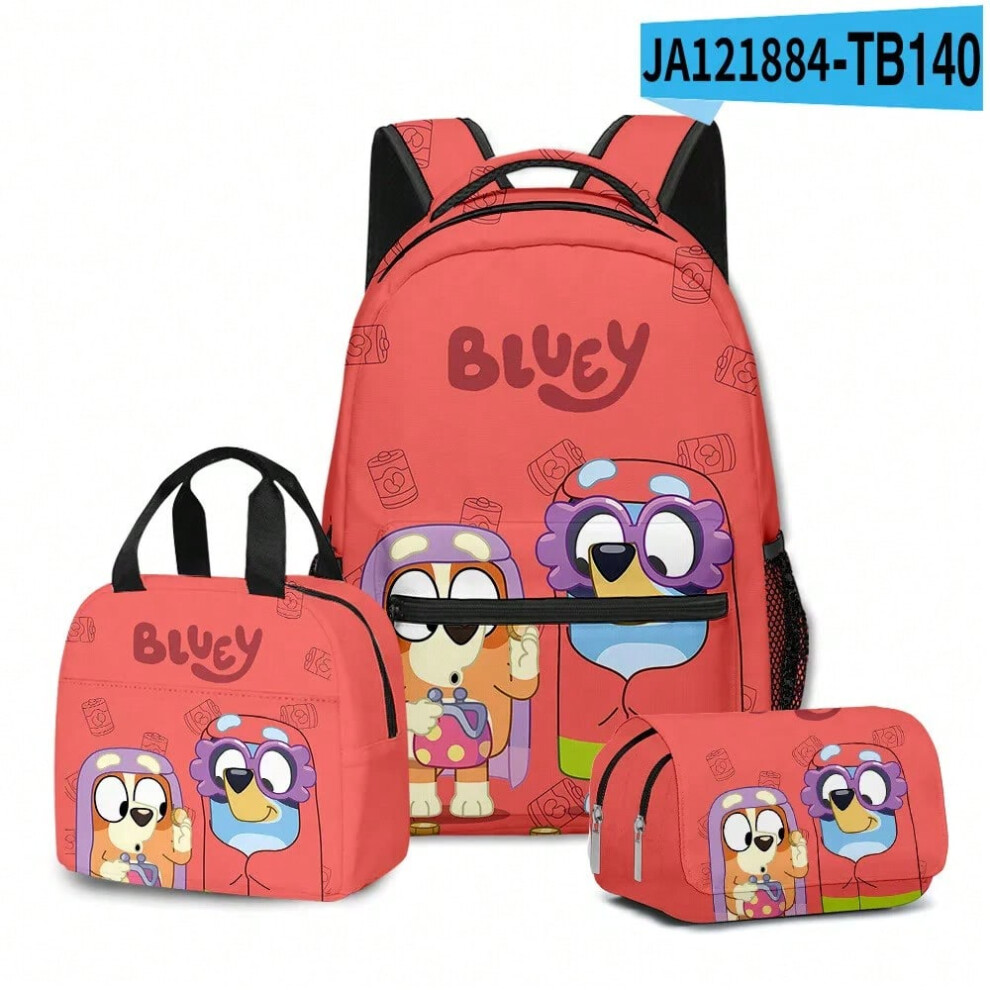 (23) 3pcs Bluey Backpack Set Pencil Case Children Lunch Box Bento Bags Mochilas Handbag Reduce School Bag Large-Capacity Cartoon Gift