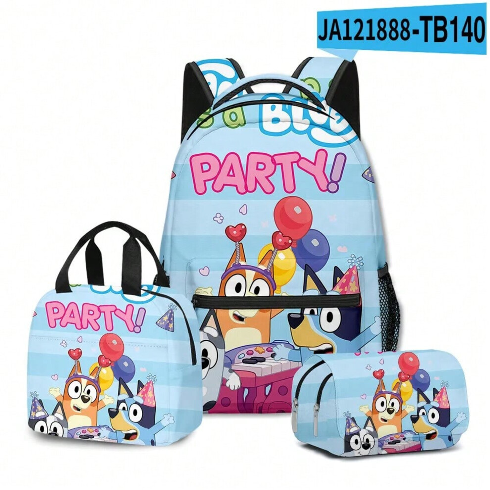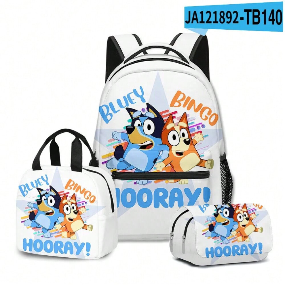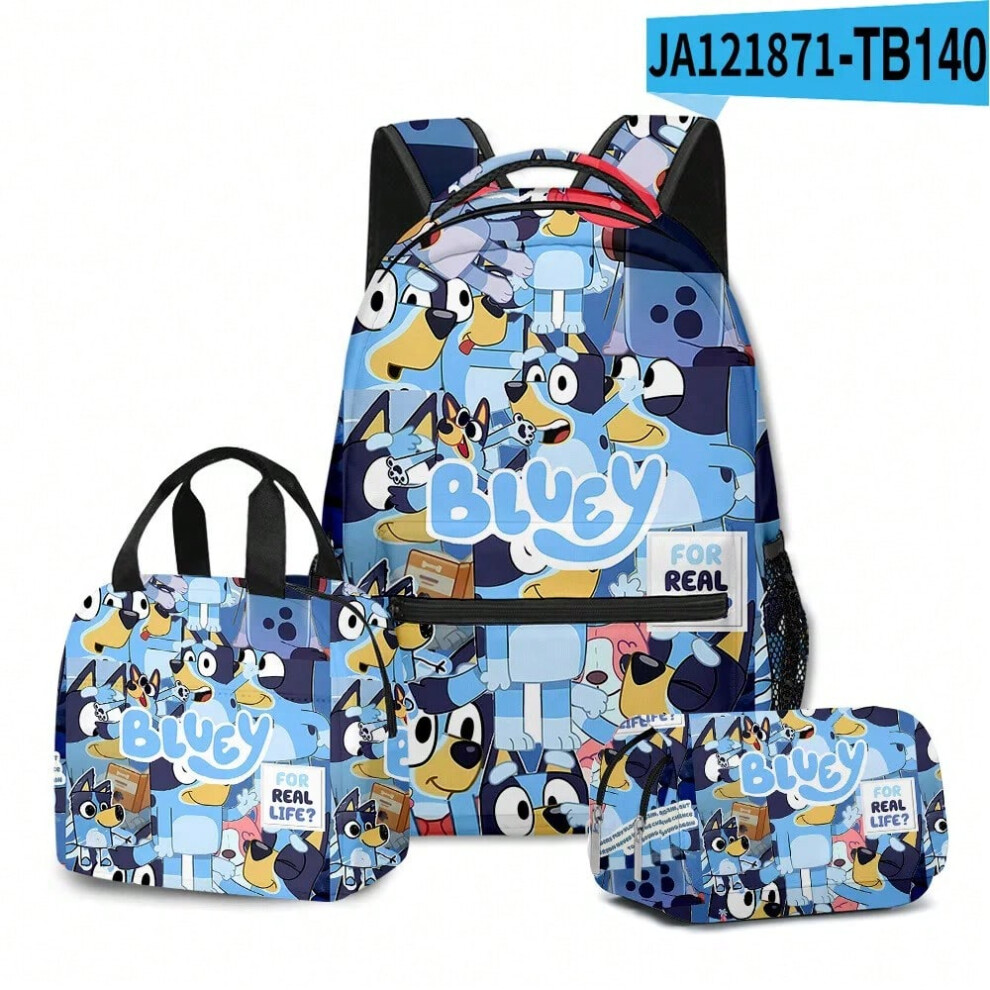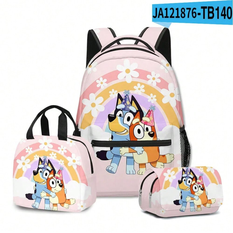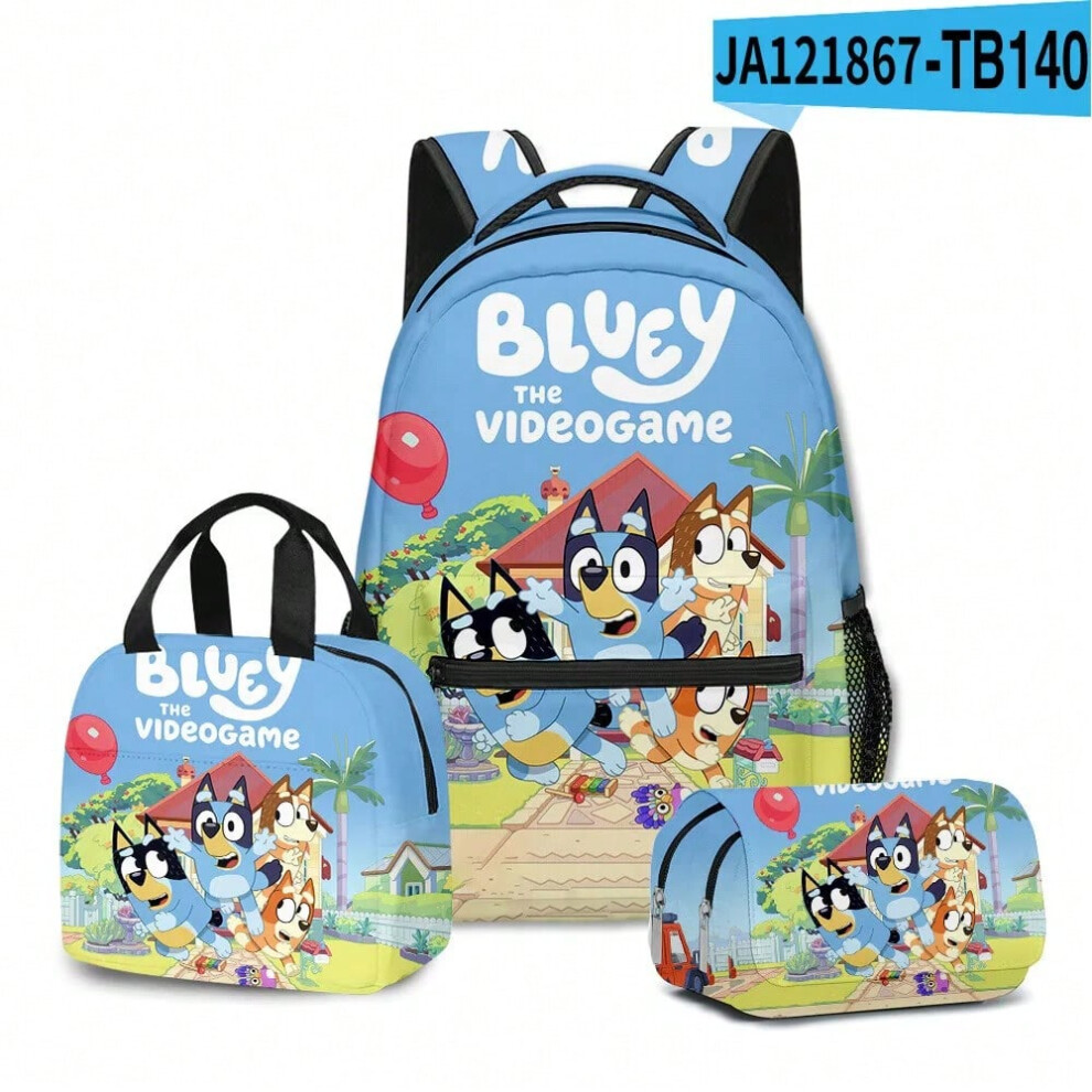 (23) 3pcs Bluey Backpack Set Pencil Case Children Lunch Box Bento Bags Mochilas Handbag Reduce School Bag Large-Capacity Cartoon Gift