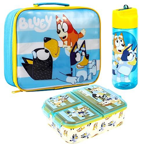 Zawadi Global Bluey Kids Childrens Lunch Box Set – Insulated Lunch Bag, Multicompartment Lunch Box & 540ml Water Bottle - School Travel Lunch Food Set, BPA Free