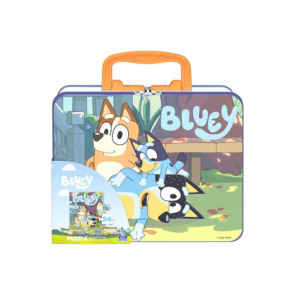 Bluey 875377 Bluey & Family Tin Lunch Box with Puzzle, Blue & Yellow - 24 Piece