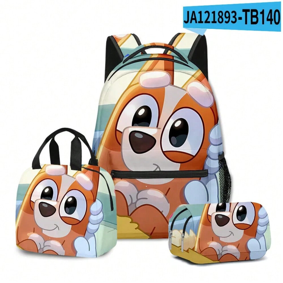 (20) 3pcs Bluey Backpack Set Pencil Case Children Lunch Box Bento Bags Mochilas Handbag Reduce School Bag Large-Capacity Cartoon Gift