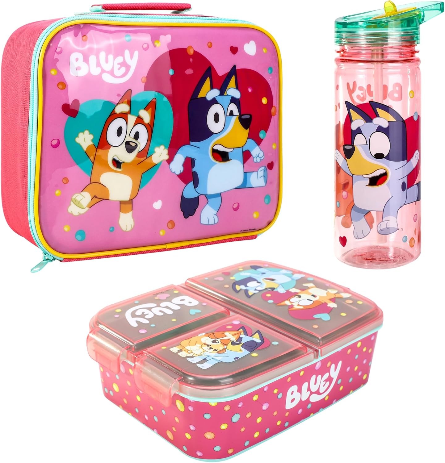 Bluey Kids Childrens Lunch Box Set â Insulated Lunch Bag, Multicompartment Lunch Box & 540ml Water Bottle - School Travel Lunch Food Set, BPA Free