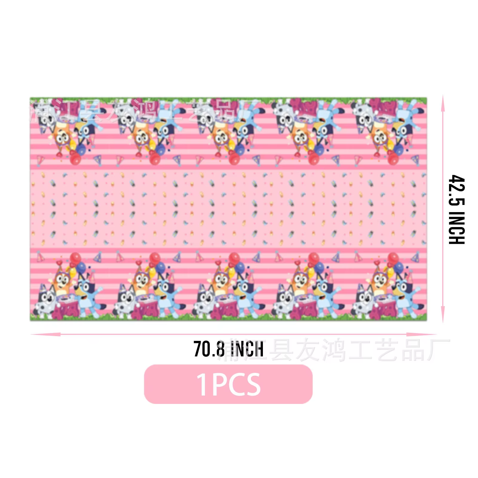 51Pcs Blue Dog Bluey Party Supplies Include a Tablecloth, Plates, Cups, Napkins