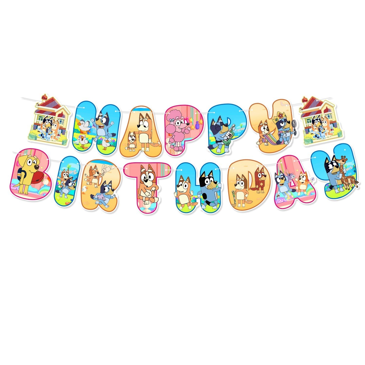 (1set-Triangle Banner) Bluey Theme Birthday Party Disposable Tableware Balloon Banner Cup Napkin Happy Birthday for Kids