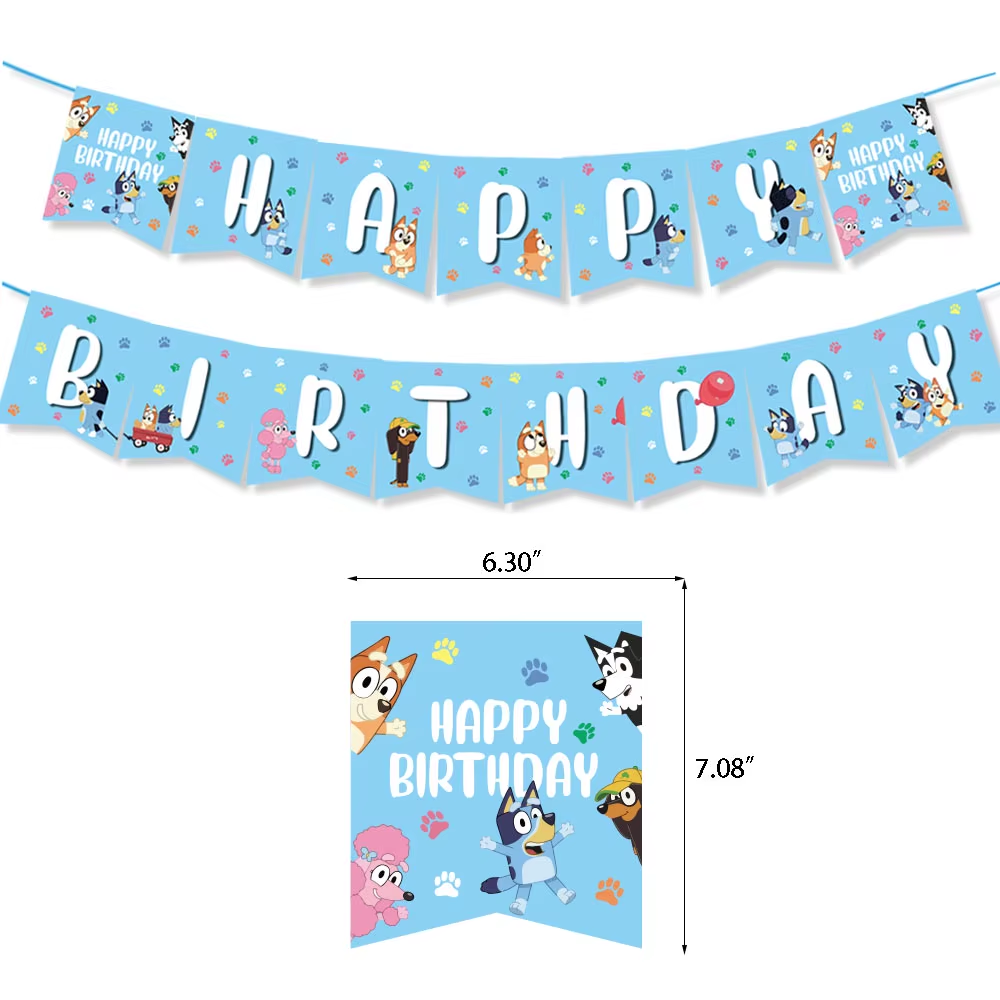 Bluey Party Set - Plates Banner Balloons Cake Topper Kids Birthday Decor UK