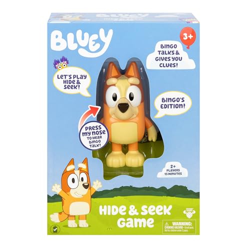 Bluey Hide & Seek Game - Bingo, Hide The Bingo Figure And Press Her Nose To Start The Built-in Timer, Bingo Talks And Giggles To Help Kids Find Her, When Found, Kids Can Dance To Bluey's Theme Song