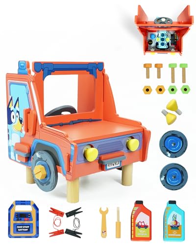 Bluey Wooden Tabletop Mechanic Set – 22 Piece Pretend Play Repair Tool Kit with Car Engine, Tools & Accessories – Compact & Portable Wooden Toy for Kids Ages 3+