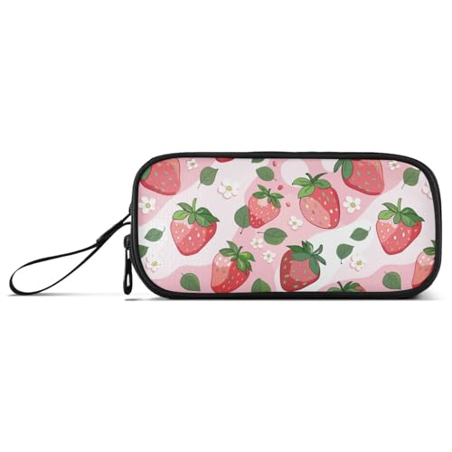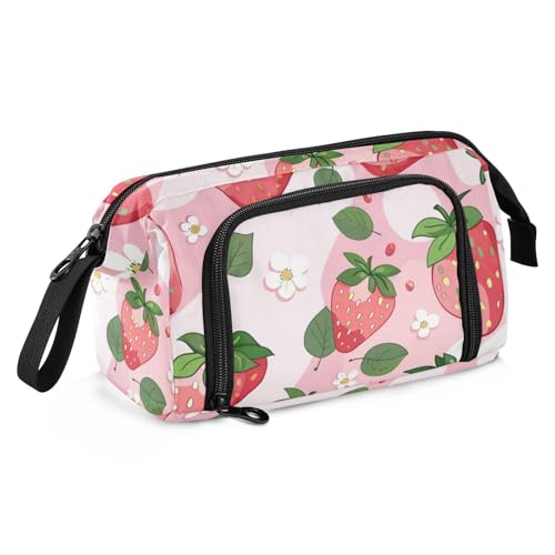 KLL Blush Strawberry Milk Pattern Pencil Bags Large Capacity Pencil Carrying Case Multifunctional for Man Kindergarten