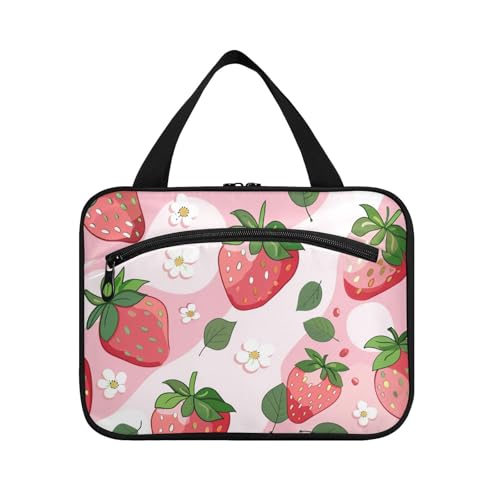 Blush Strawberry Milk Pattern Toiletry Bag for Women with Hanging Hook Unisex Bag with compartments Toilet