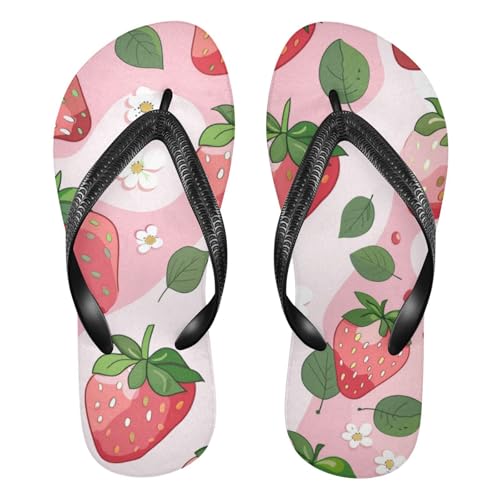 Amooorous Blush Strawberry Milk Pattern rubber flip flops for women Quick-Dry sandals for women Outdoor Swimming Hiking Travel