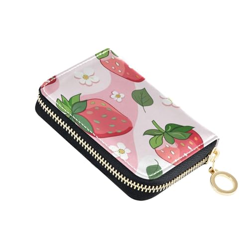 KLL Blush Strawberry Milk Pattern Leather Mens Card Wallet with Cion Purse RFID Blocking Credit Card Protector with Zipper