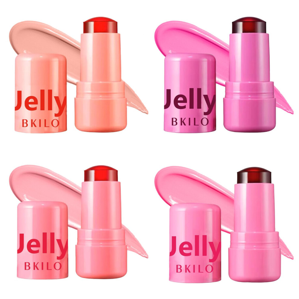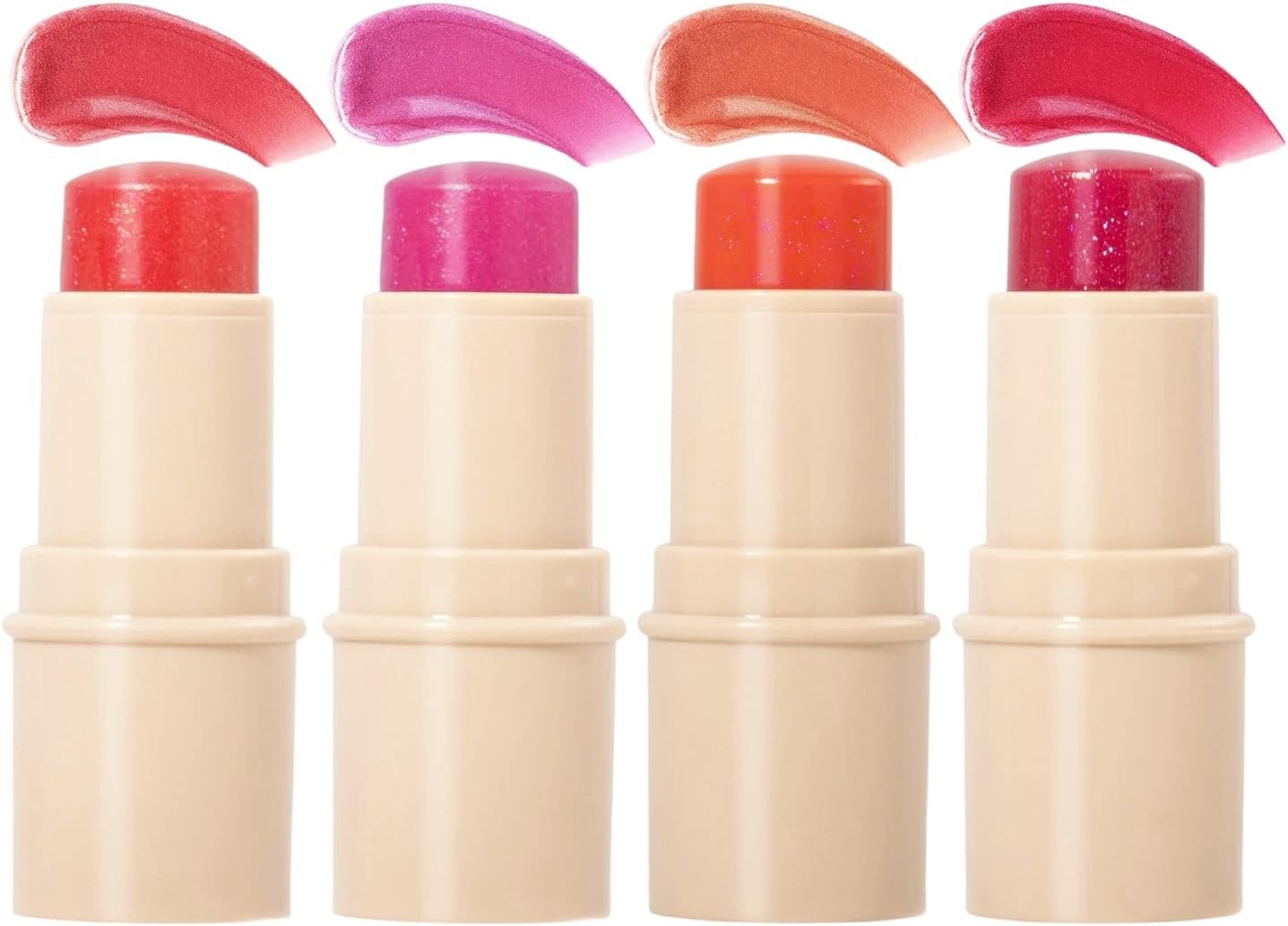 4 Pcs Jelly Blush Stick, 3 in 1 Milk Jelly Blush Stick for Cheeks Lips Eyes, Lo