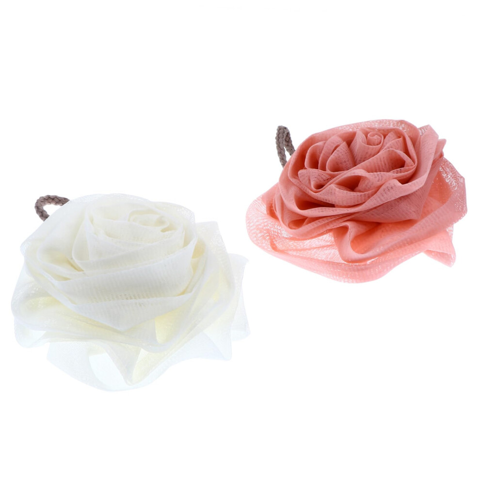 2pcs FlowerShaped Mesh Bath Sponge for Gentle Exfoliation Shower Poufs Quick Drying Loofah Balls in Blush Pink and Milk White
