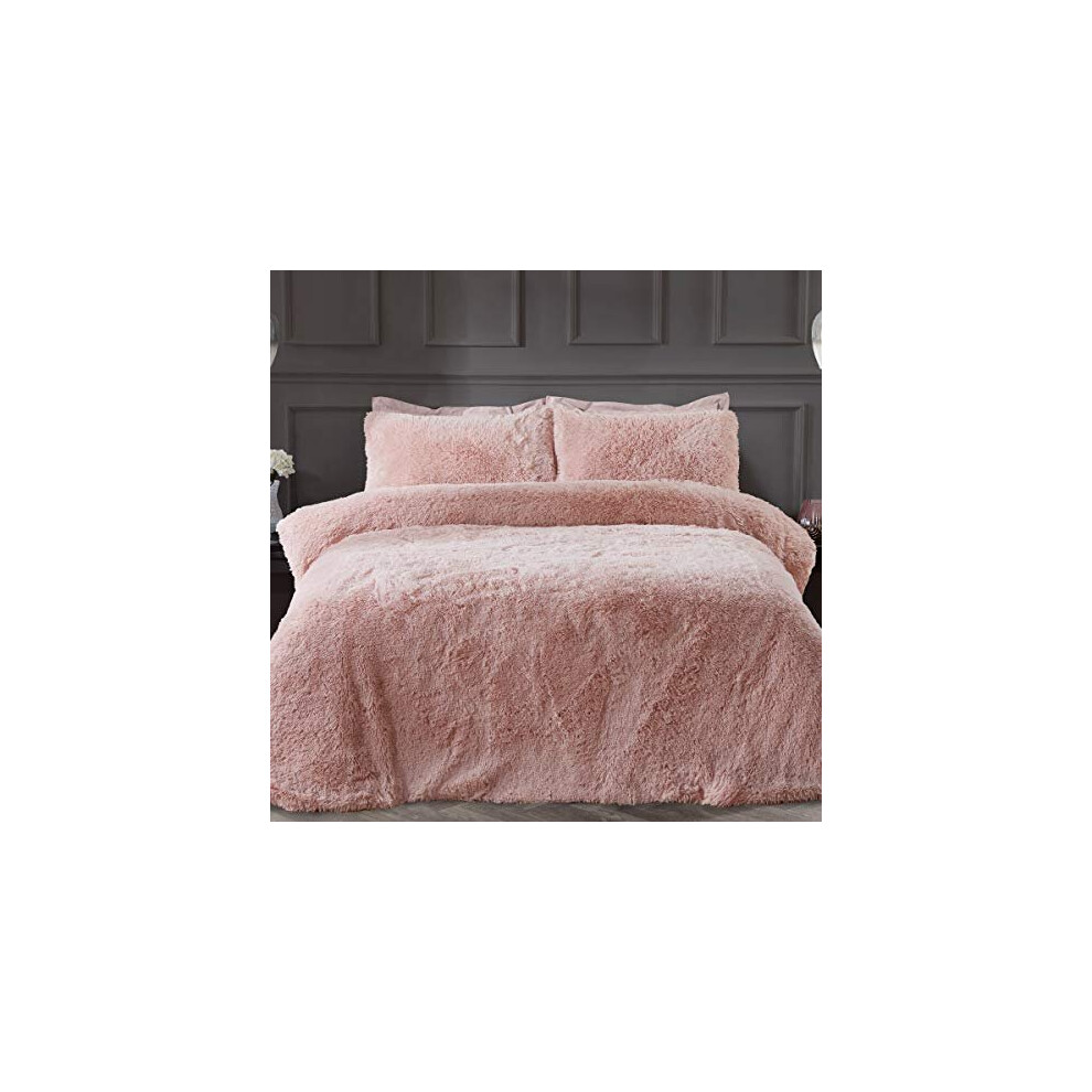 CT Hug and Snug Luxury Fluffy Fur Fleece Duvet Cover Sets Super Soft Warm Cosy Bedding Sets (Blush Pink, King Duvet Set)