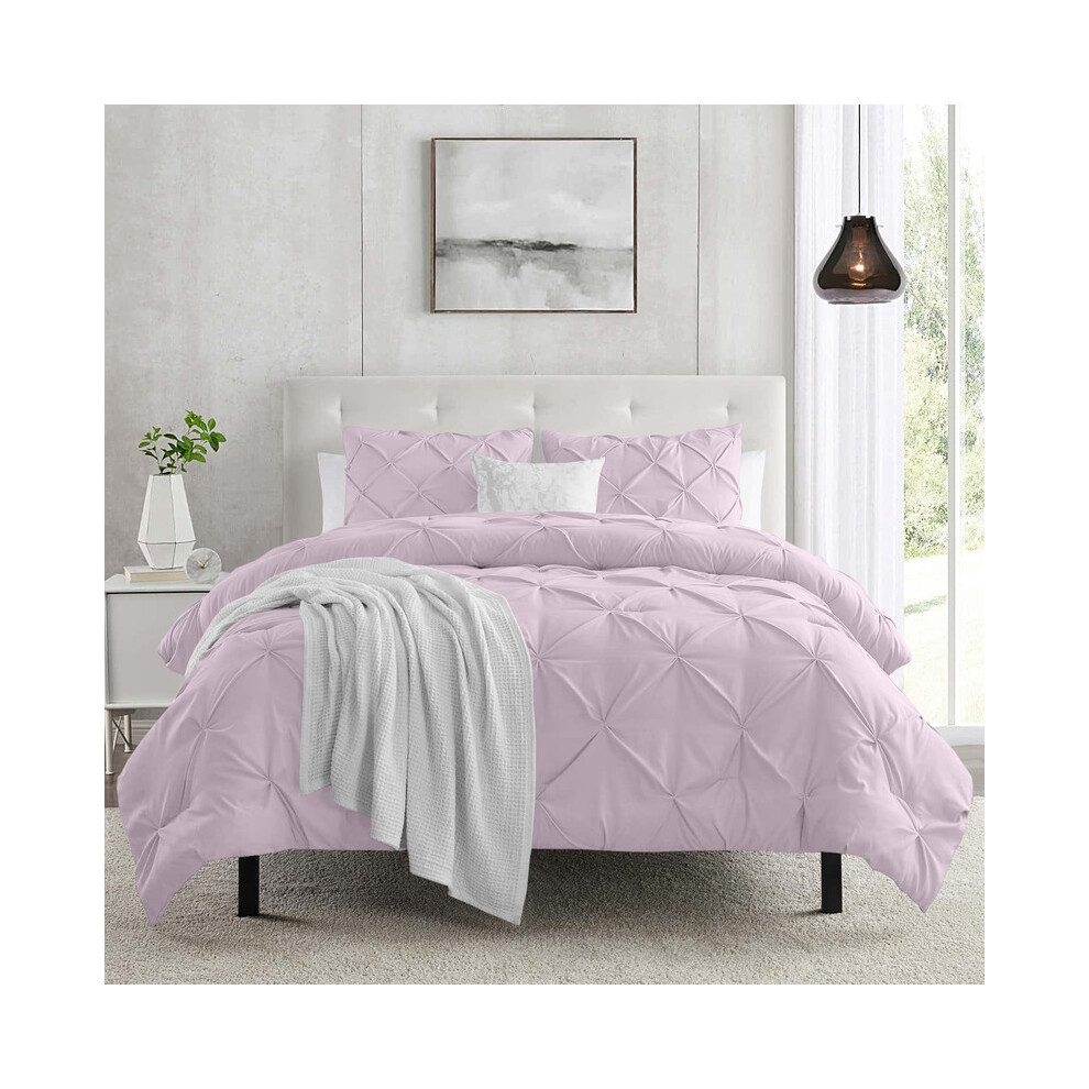 (Pink Blush, King) 3-piece Pintuck Duvet Cover Set Ultra Soft Microfiber, Wrinkle & Stain Resistant, Premium Quality Bedding
