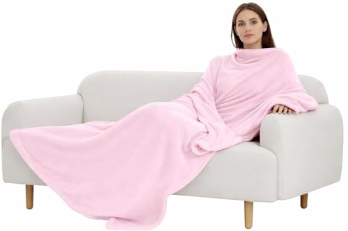 viceroy bedding Wearable TV Blankets With Sleeves, Ultra Soft Warm Thermal Fleece Blanket for Couch Sofa Bed Cosy Oversized Fleece Snuggle Throw (Blush Pink)