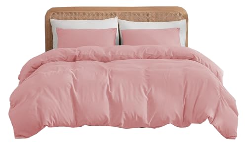 REHAN & CO Double Duvet Set Blush Pink – Soft Brushed Microfiber Bedding Duvet Cover Sets – Plain Quilt Cover With Pillow Cases.