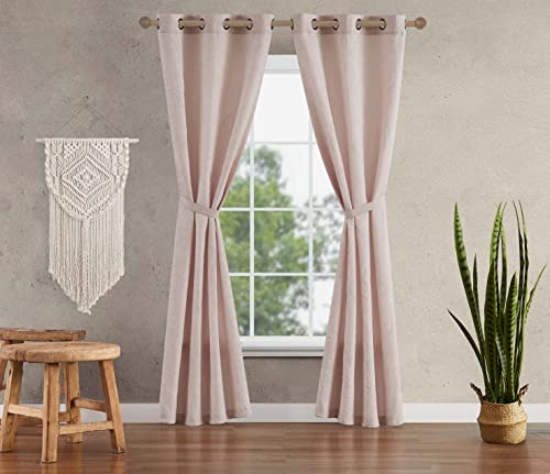 Jessica Simpson – Groovy Textured Floral Paisley Ultimate Blackout Curtains | Set of 2 Panels and 2 Tiebacks | Privacy Drapes | Premium Grommet Header | 38" x 84" | Blush Pink