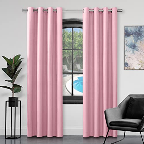 SINGINGLORY Baby Pink Blackout Curtains for Bedroom and Living Room, Grommet Linen Textured Darkening Curtains/Drapes Thermal Insulated 2 Panels Set (Blush Pink, 52x63 Inch)