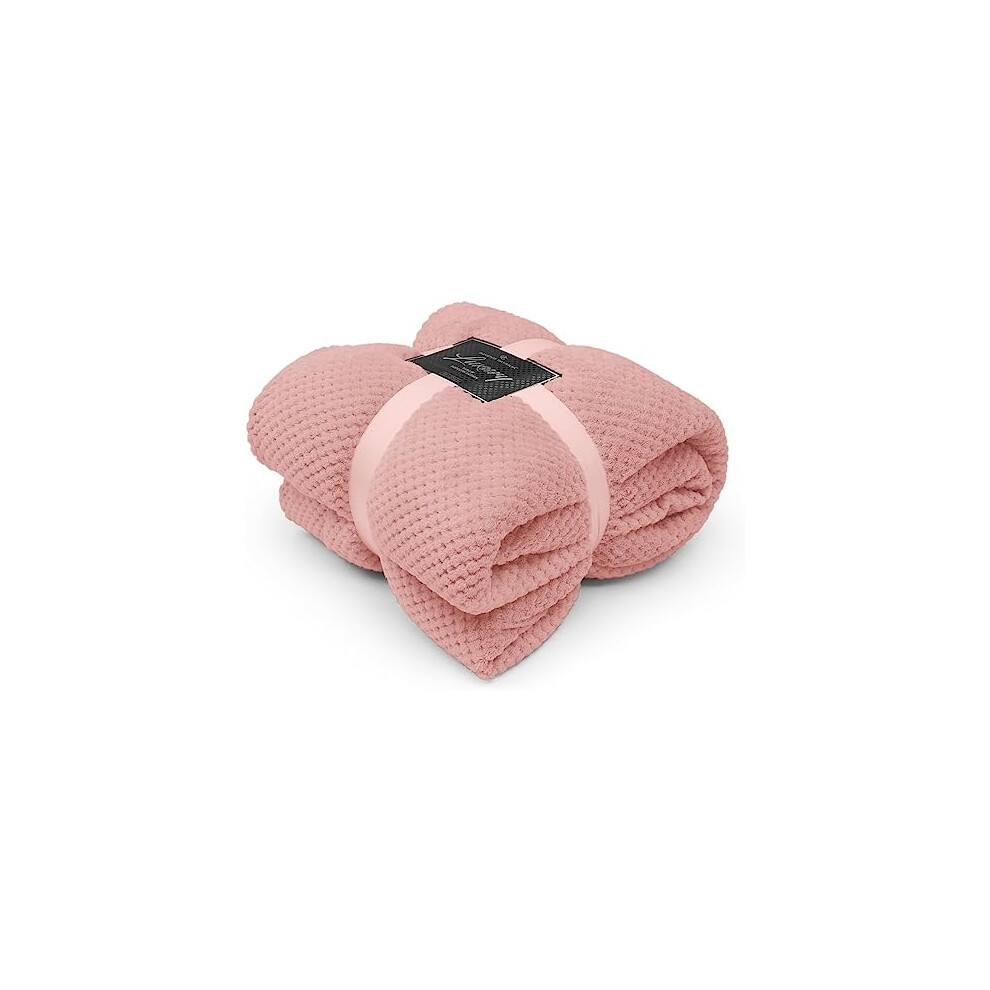 FAIRWAYUK Waffle Honeycomb Throw Fleece Blankets, 100% Polyester Warm Faux Fur Throws Over Sofa Bed Settee Soft Blanket, Extra Large (Blush Pink,