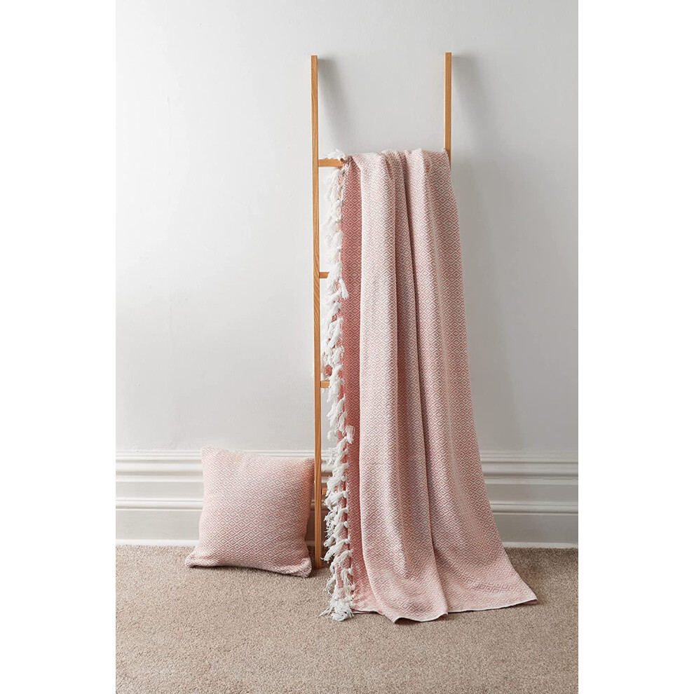 London Dream Regal Extra Large Throws Bedspread (228 x 254 cm) Blush Pink Diamond Geo Pattern, 100% Cotton Reversible Blanket Throw For Settees 3