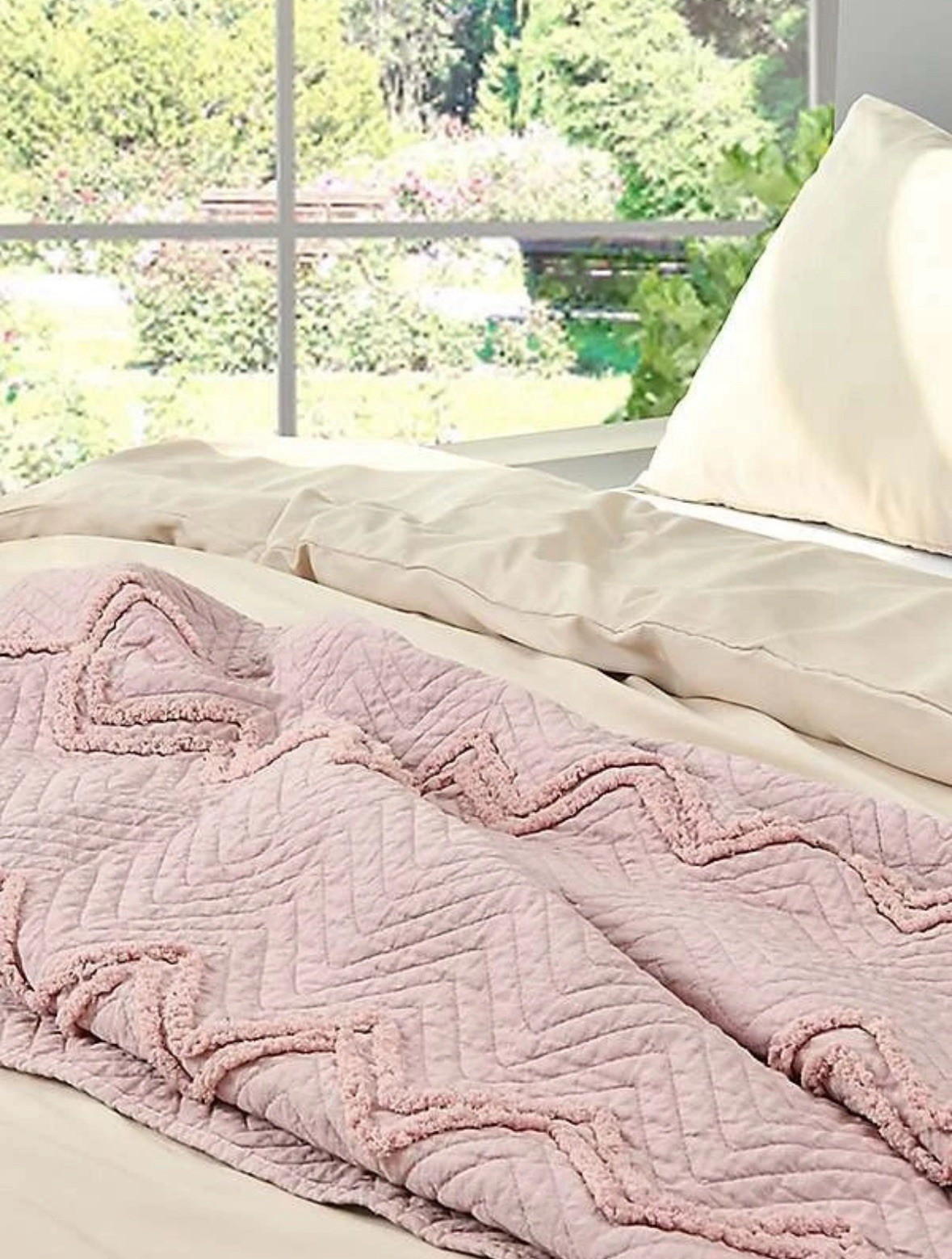 Sleepdown Zig Zag Tufted Throw Over Blush Pink 150x200cm