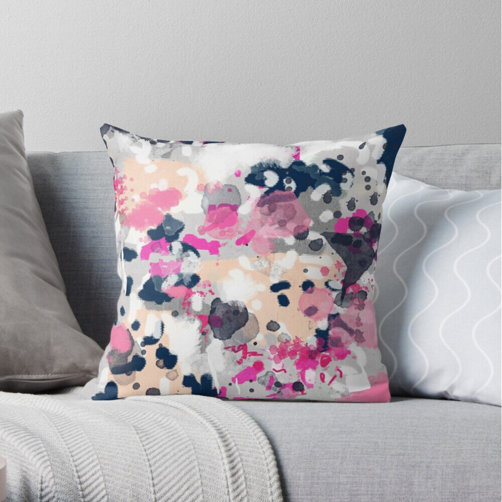 Pillow Cases Nico - Abstract painting in pink, blush, navy, modern trendy colors Throw Cover 12x12 16x16 18x18 inch 7 Size