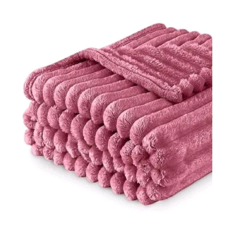 (Blush Pink, King 200Ã240cm) Super Soft Faux Fur Ribbed Fleece Throw Blanket â Winter Warm Double/King Size, Ideal for Bed, Sofa, or Chair couch