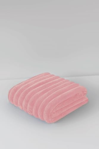 Chunky Ribbed Faux Fur Throw Blanket Blush Pink