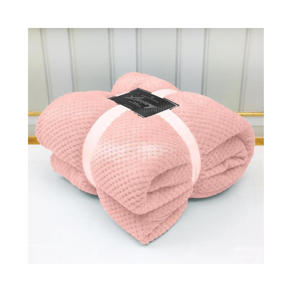 (BLUSH PINK, DOUBLE [150CM*200CM]) Luxury Popcorn Waffle Blanket Fleece Travel Throw Sofa Bed Warm Cosy Double King