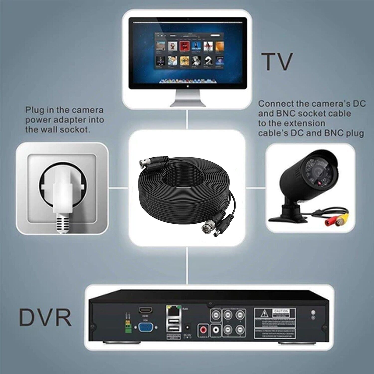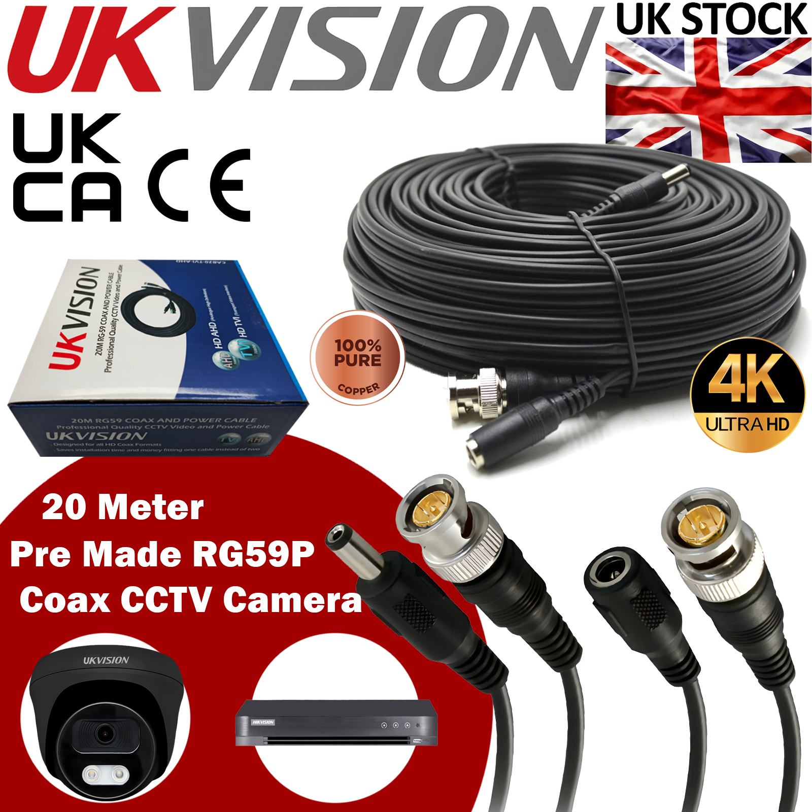 BNC DC CCTV CABLE 4K VIDEO CAMERA DVR POWER RG59 EXTENSION LEAD 20M UKvision