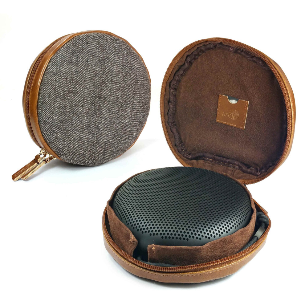 TUFF LUV Herringbone Tweed NFC Travel Case for Bang & Olufsen B&O BeoPlay A1 Bluetooth speaker - Brown