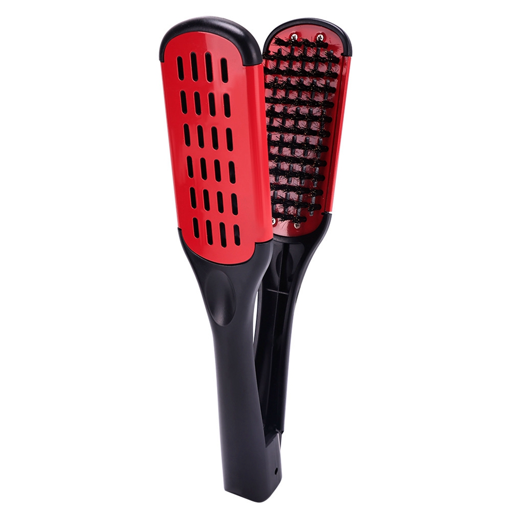2X(Boar Bristle Sided Brush Comb Clamp -Static Hair Straightener Tool Comb5573