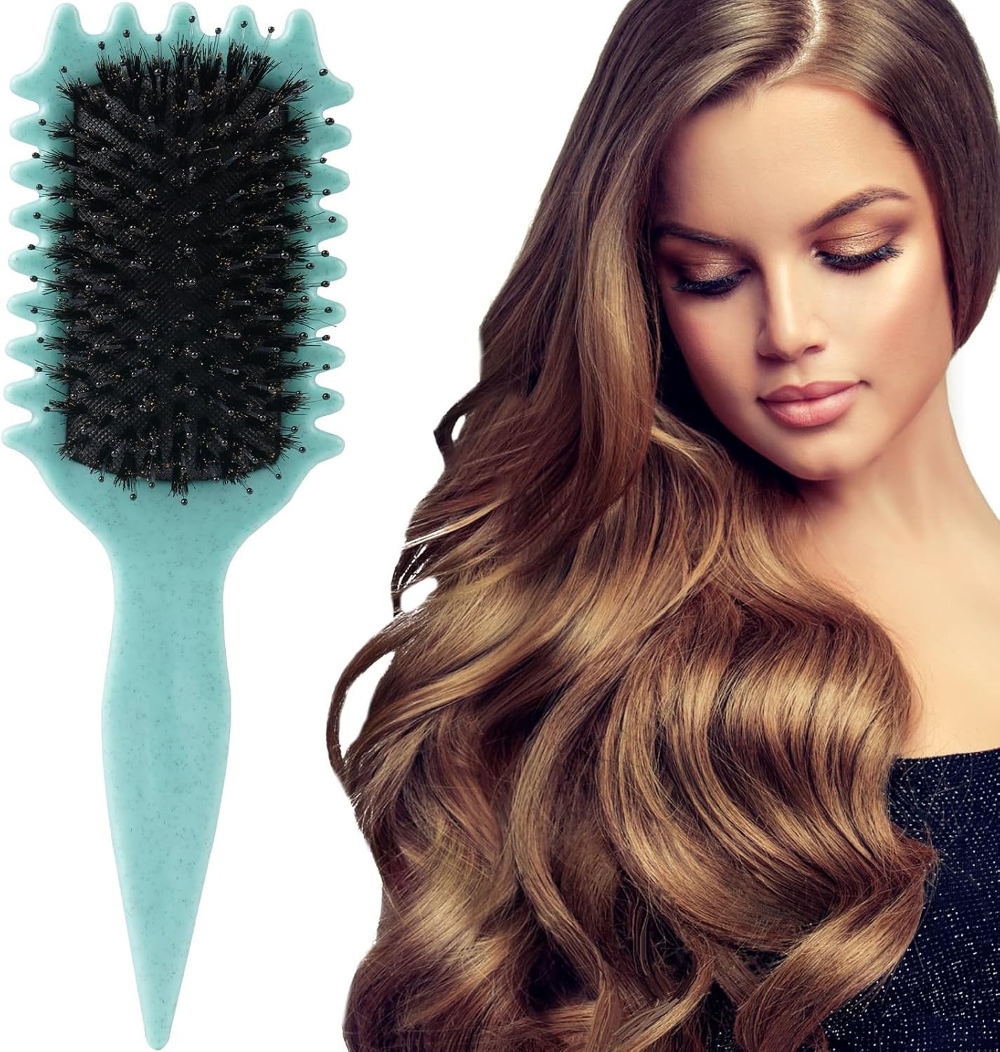 Urbeokr Curl Defining Brush - Newest Boar Bristle Styling Brush for Curly Hair, Shapes & Defines Curls (Green, 1PCS)