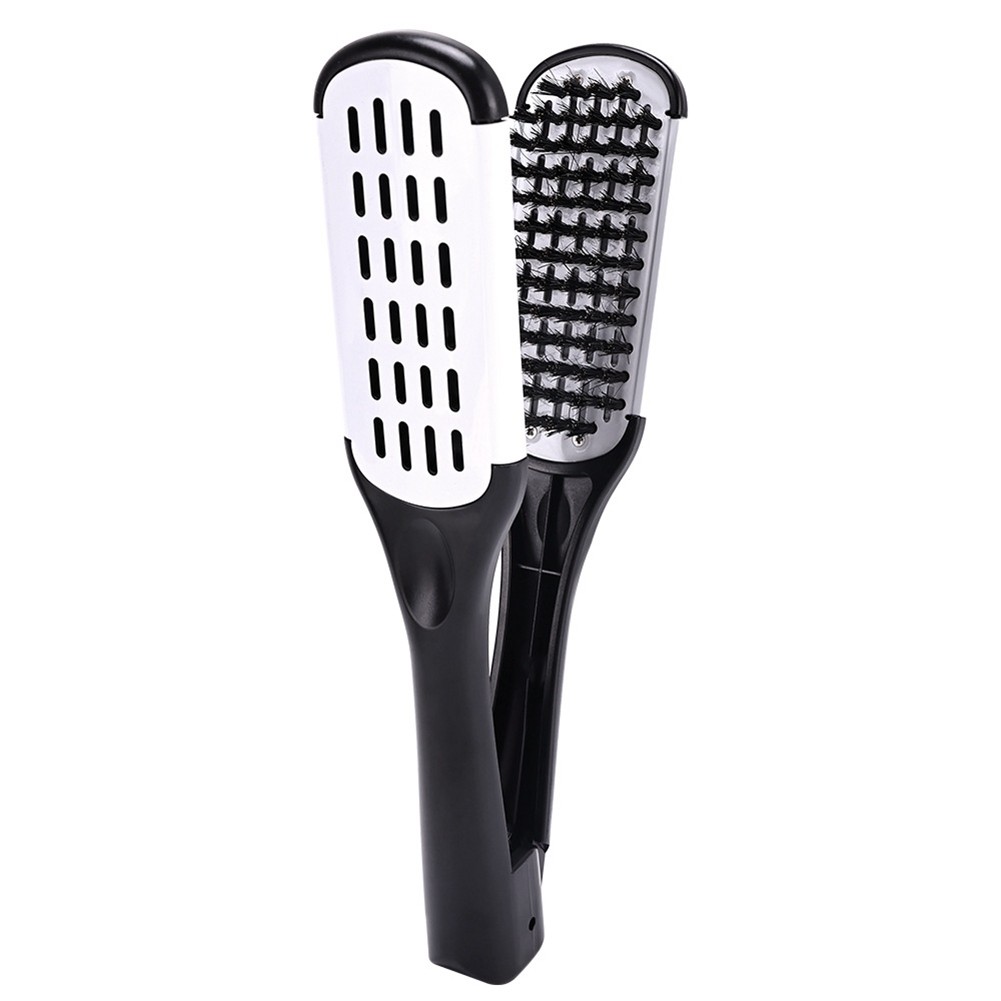 Boar Bristle Double Sided Brush Comb Clamp Anti-Static Hair Straightener7648