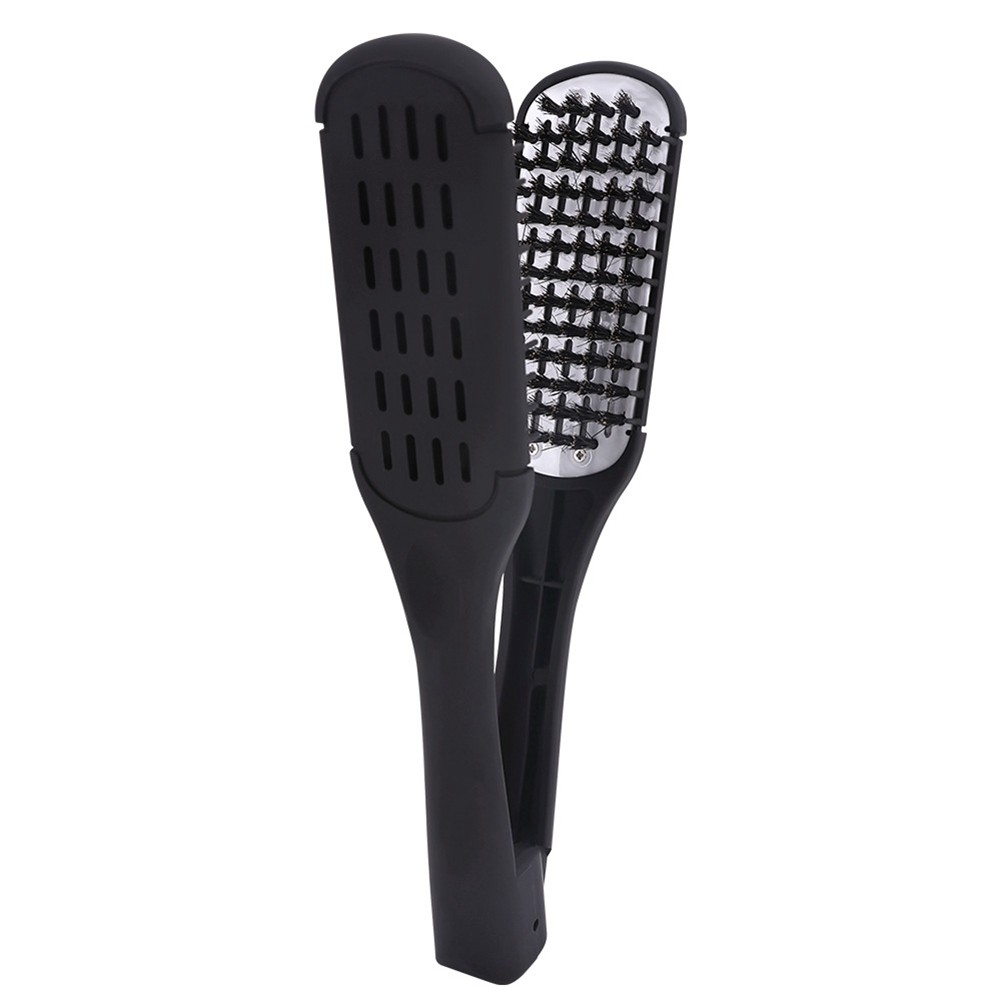 Boar Bristle Double Sided Brush Comb Clamp Anti-Static Hair Straightener9776