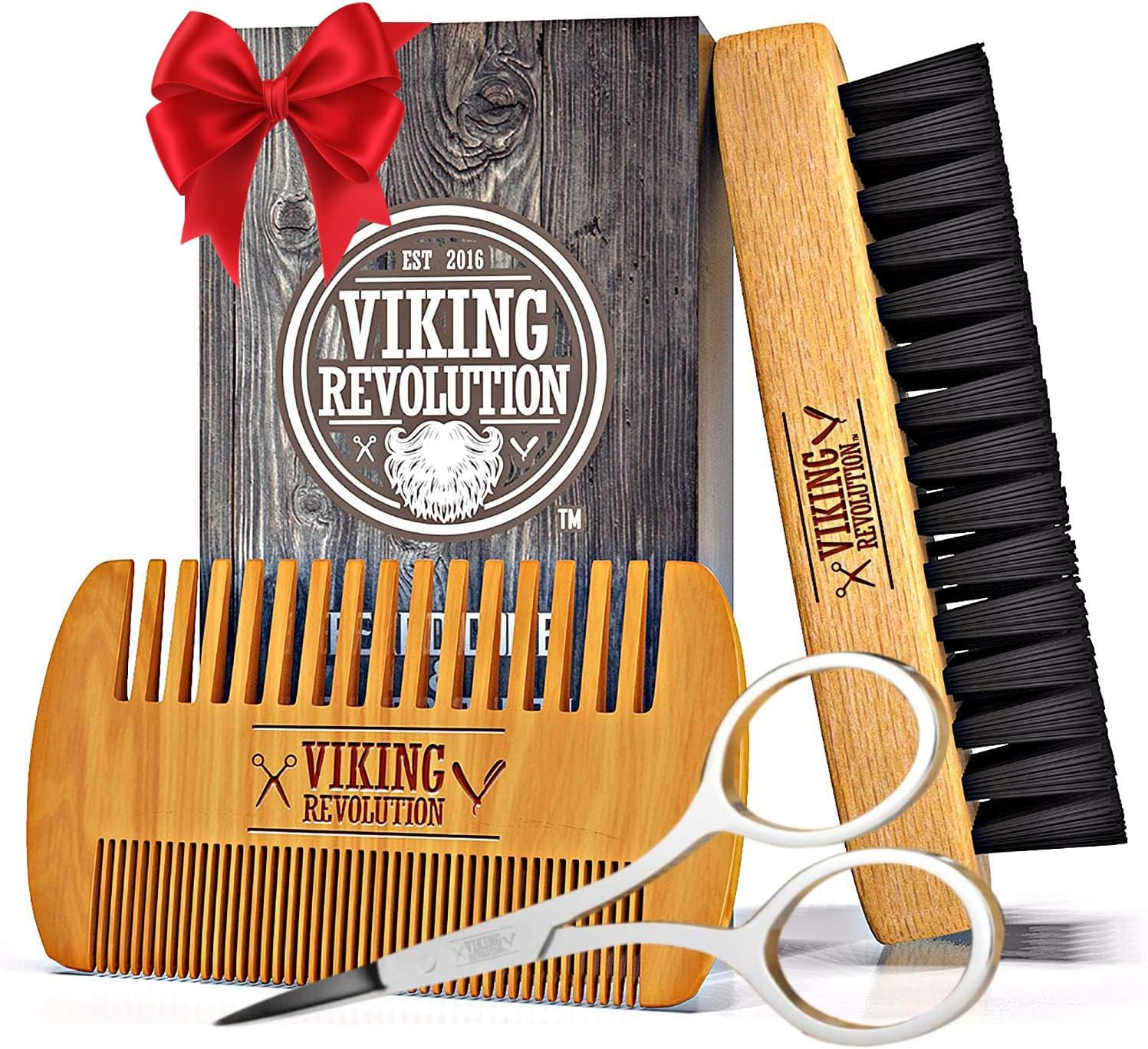 Viking Revolution - Beard Brush For Men - Natural Boar Bristle Brush And Dual Action Pear Wood Beard Combs With Velvet Travel Pouch - Mens Gifts - 3 Pieces